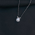 This elegant black bead mangalsutra is adorned with a stunning teardrop gemstone pendant. Crafted with expert precision, this piece adds a touch of sophistication to any outfit. The unique design and high-quality materials make this mangalsutra a timeless addition to any jewelry collection.